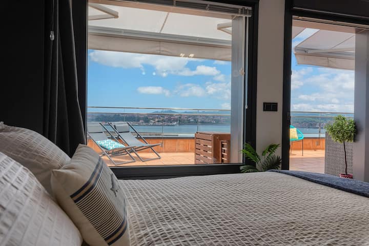 Baskische kust attic Bilbao-terraszeezicht-jacuzi
