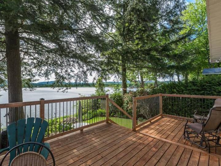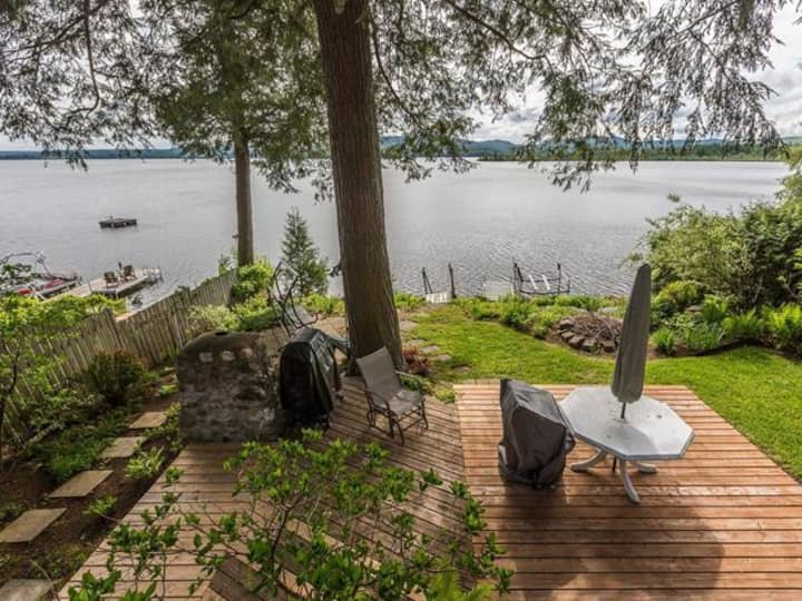 Deze woning ligt direct aan Lac Brome.