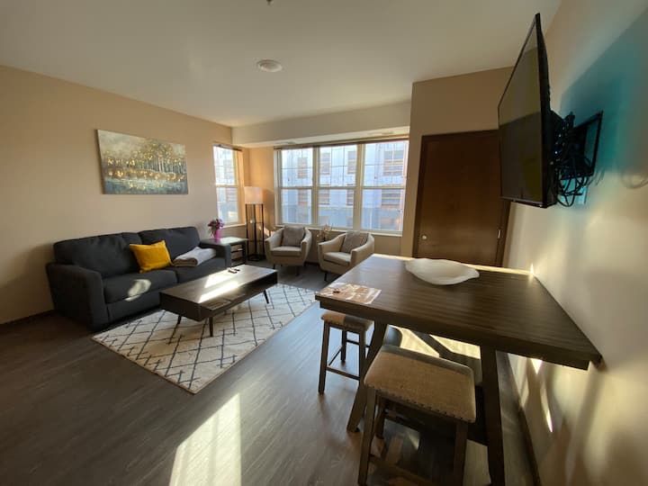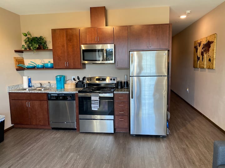 Moderne suite met wasmachine en droger op I-94