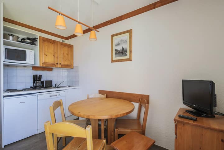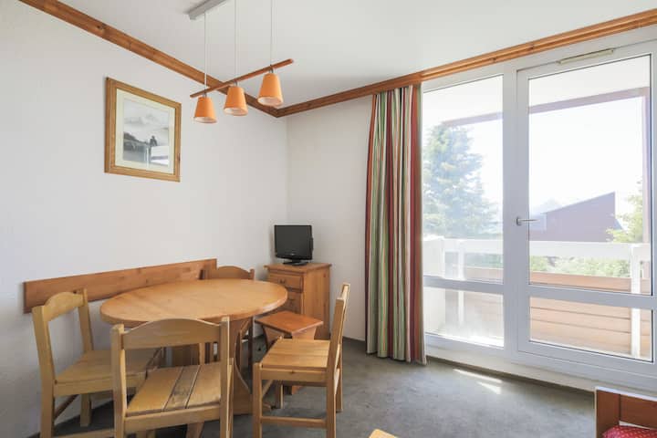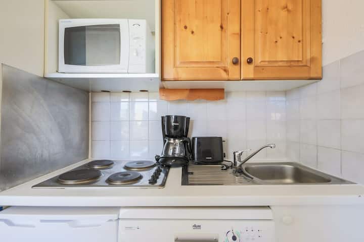 Functionele studio met cabinehoek, ideaal gelegen op de 1e verdieping. Je zult genieten van een balkon op het zuiden met een vrij uitzicht op de berg, perfect om te genieten van het ontbijt in de zon. Skikluisje beschikbaar, ideaal voor verblijven in de bergen.