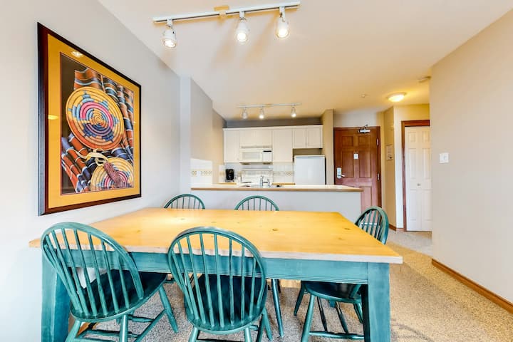 1BR ski-appartement met balkon, zwembad en bubbelbaden