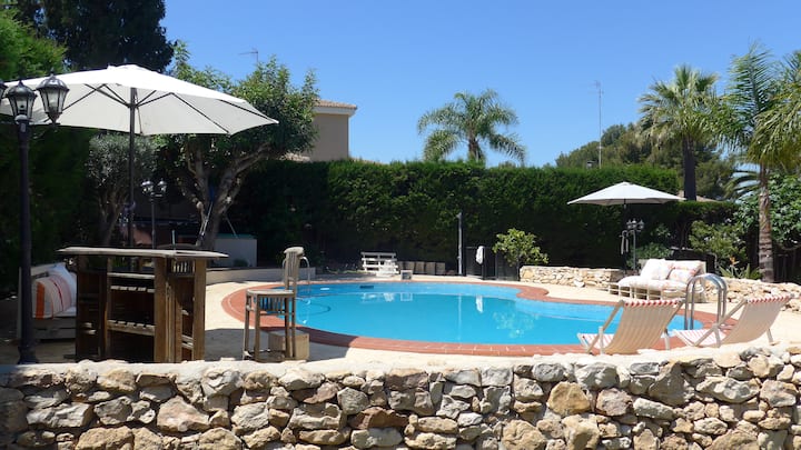 Dit is een van de weinige accommodaties in de omgeving met een zwembad.