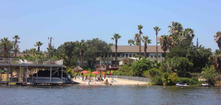 Lake LBJ, strand, zwembad, kingsize bed, uitzicht op het meer