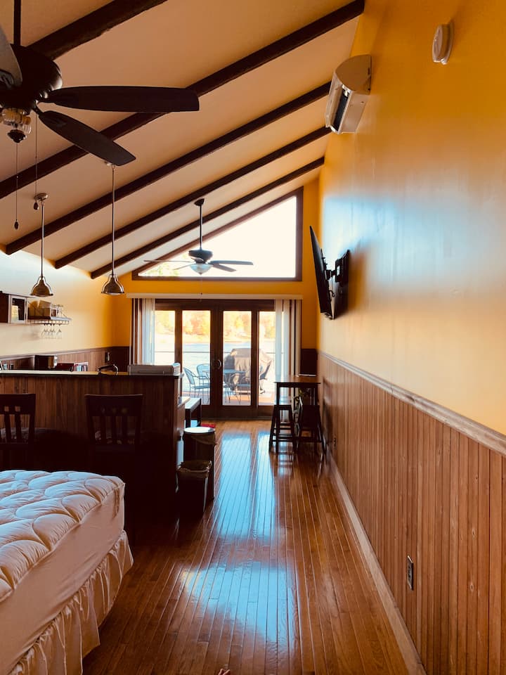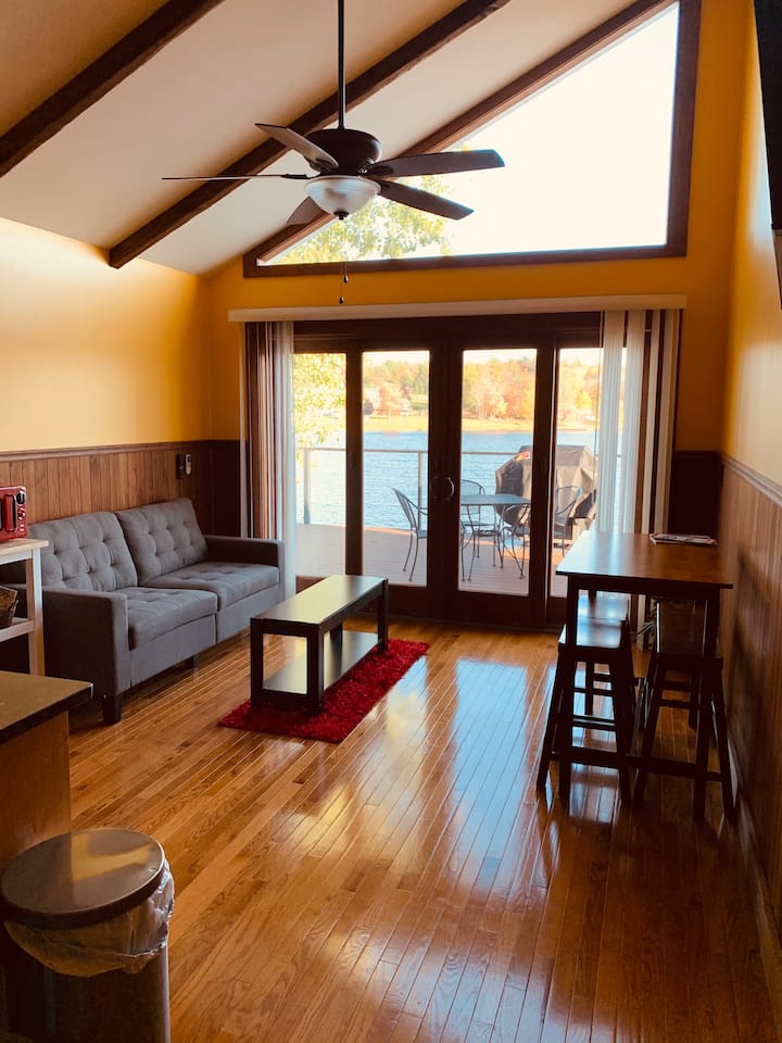 Deze woning ligt direct aan Lake Huntington.