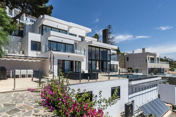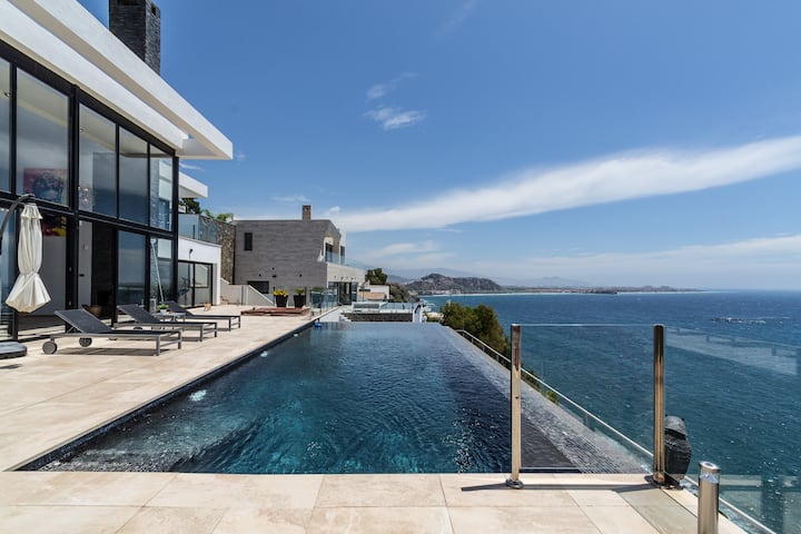 De designvilla ligt op het zuiden en heeft daardoor een uniek uitzicht op de zonsondergang over de Middellandse Zee. De ligging, het concept, het woonvolume en de afwerking van de villa resulteren in een hyperluxe villa. De hoge raampartijen van de woonkamer, die zich uitstrekken over 2 verdiepingen, zorgen voor een optimale lichtinval en direct contact met de indrukwekkende buitenomgeving. De luxe keuken en 4 slaapkamers met en-suite badkamers hebben een hoog afwerkingsniveau. Elke slaapkamer heeft een eigen balkon dat uitkijkt op de Middellandse Zee en samen met de terrassen is er voldoende ruimte voor privacy en rust. De villa is geschikt voor maximaal 8 gasten in de slaapkamers en voor 2 personen die gebruik maken van de slaapbank in het recreatiegebied.