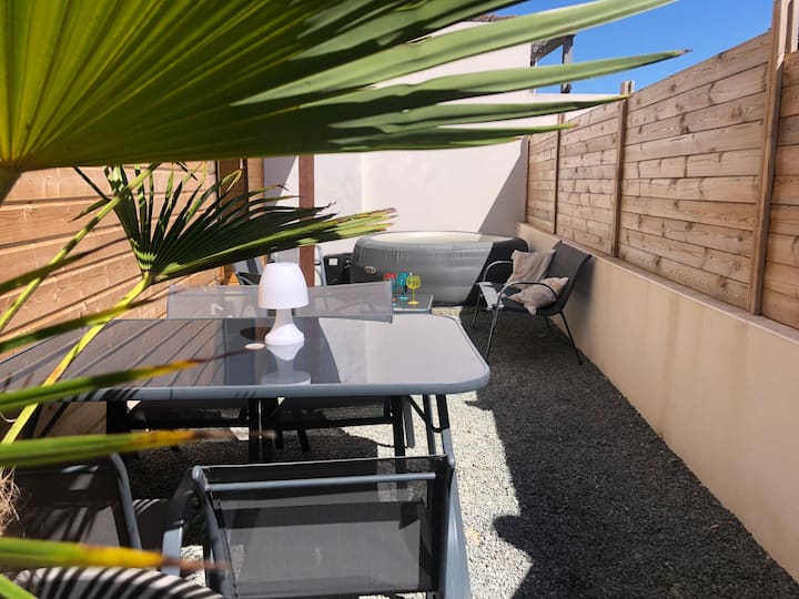 APT, 3 suites, privé binnenplaats met SPA op 400 m van het strand.