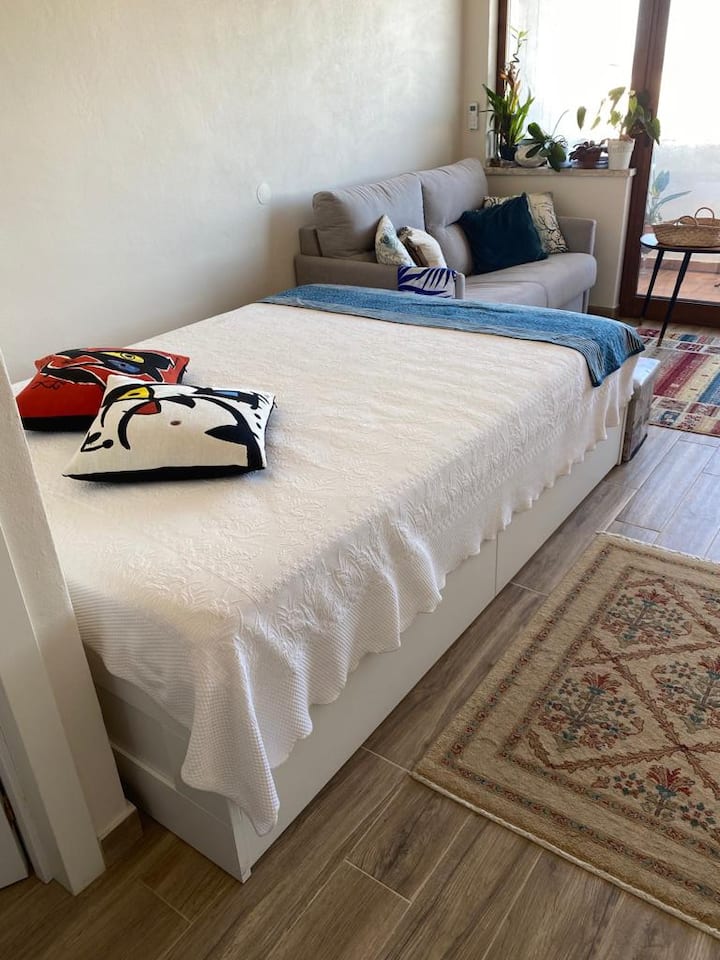 1 tweepersoonsbed, 1 slaapbank