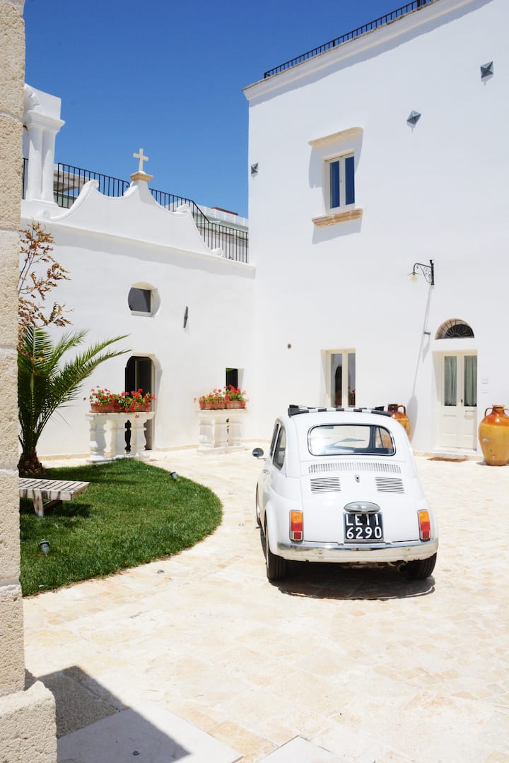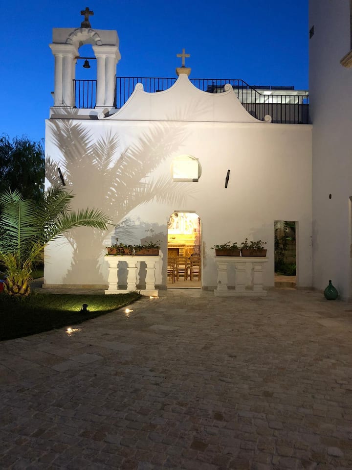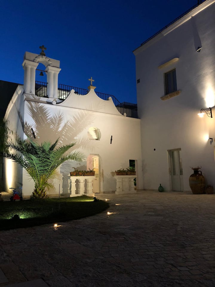Met bijzondere zorg zijn de meubels gekozen, slim gecontextualiseerd met de architectuur. De begane grond is ondergedompeld in een grote ‘’mediterrane ’tuin met zwembad, babyzwembad, bubbelbad, groen uitgerust voor het spel van de kleintjes, geschikt om te verwelkomen met de karakteristieke kerk en andere overdekte ruimtes, zelfs van discreet belang.