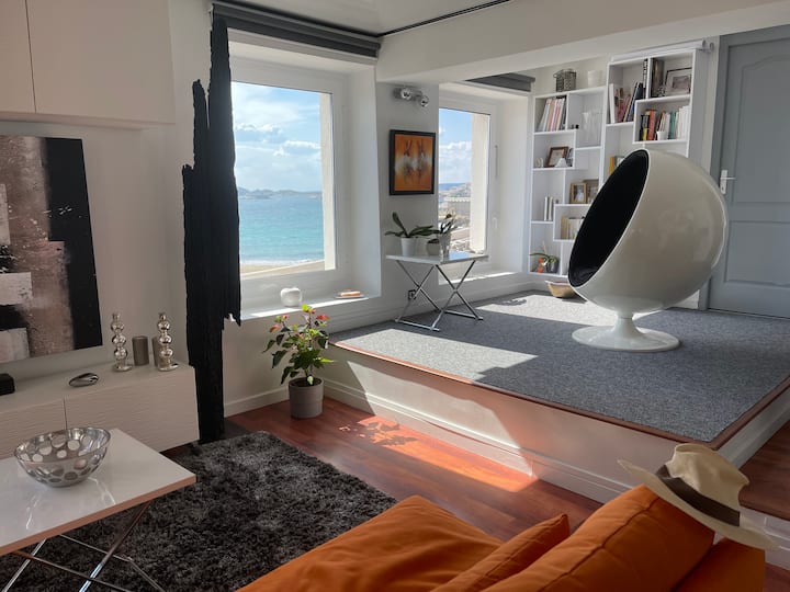 Appartement op de rots, uitzicht op zee, voorkant van het strand