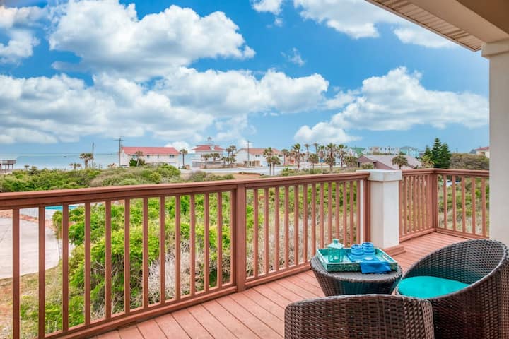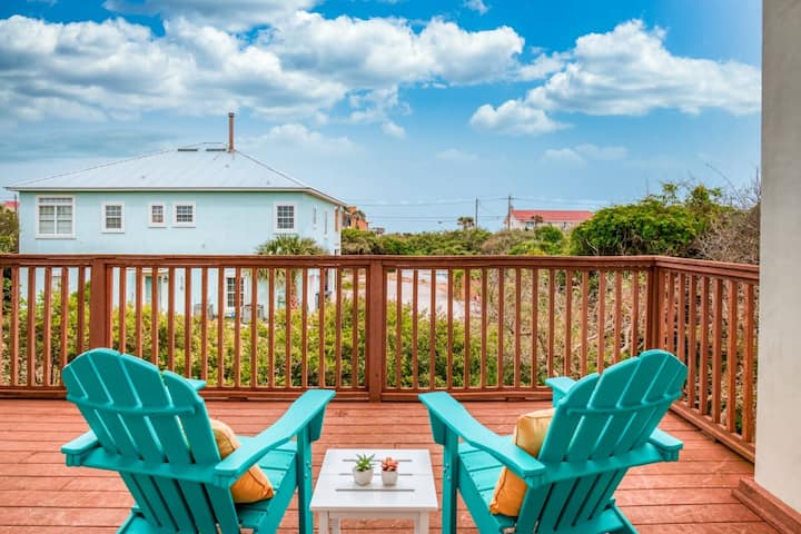 Geniet van dit fantastische strandhuis in Florida op een steenworp afstand van het prachtige Vilano Beach!! Tucker 's Hideaway ligt in prachtige duineiken en is een high-end, ruime woning die perfect is voor grote gezinnen om voldoende ruimte te hebben om rond te hangen en te profiteren van die geweldige locatie vlak bij het strand en een korte rit naar het historische St. Augustine. Maximaliseer het buitenleven en het uitzicht terwijl je geniet van een kopje koffie of een glas wijn op de meerdere dekken aan de achterkant van het huis. Tucker's Hideaway is nieuw ingericht met stijlvol informeel meubilair en gevuld met alles wat je nodig hebt om een zorgeloze tijd weg te hebben.
