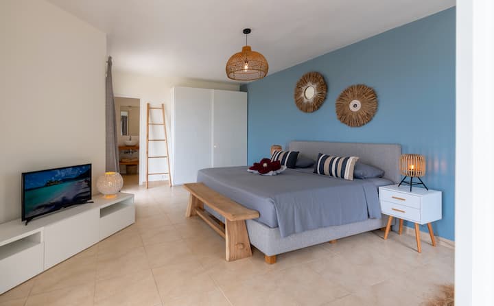 5. Belangrijke overweging: Op het eiland Curaçao is airconditioning alleen beschikbaar in de slaapkamers. De woonkamer en keuken zijn ontworpen om natuurlijk geventileerd en aangenaam te zijn wanneer ramen en deuren worden geopend, waardoor de koele eilandbries door de woning kan stromen.