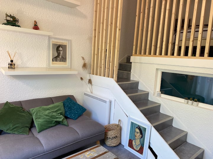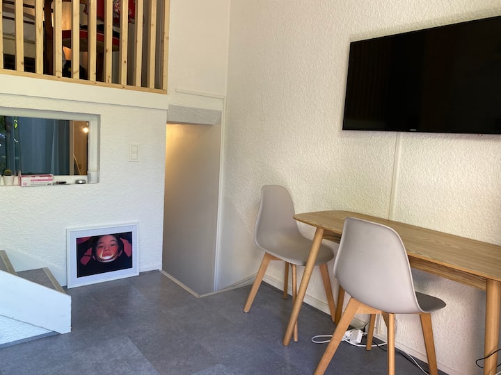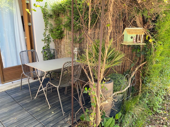 Charmante T2 met terras, 5 minuten lopen van het meer
