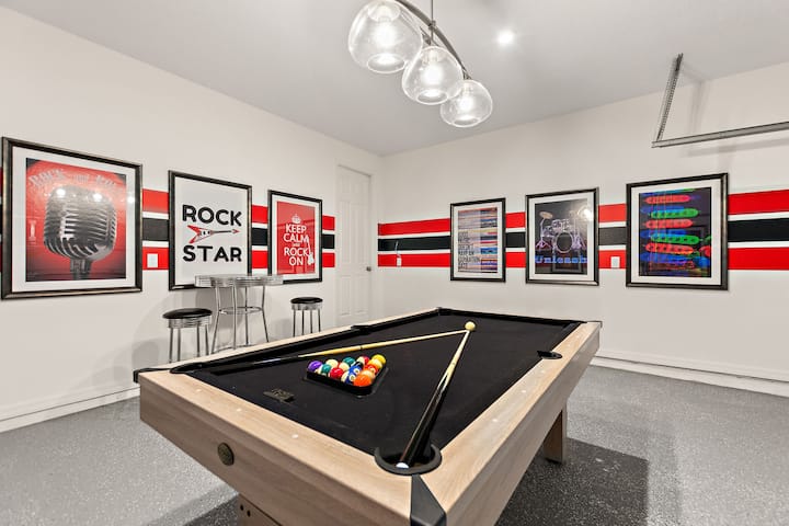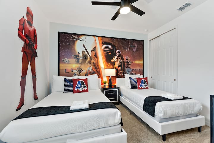 Deze woning heeft het allemaal. Privézwembad en spa met uitzicht op het water, media-loftruimte met arcade-machine, kamer met airconditioning en zwembad. Camp Mickey Bunk Room en Star Wars slaapkamer is nog maar het begin!