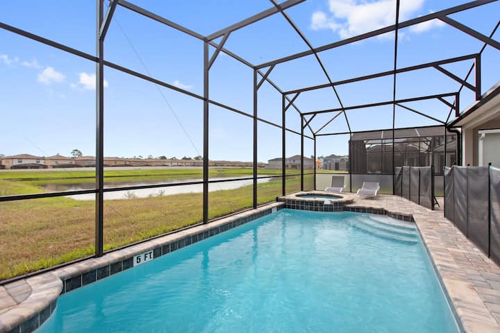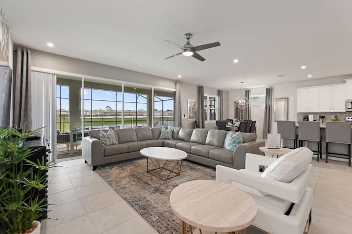 Deze woning heeft het ALLEMAAL. Privézwembad en spa met uitzicht op water, Media Loft-gebied met speelhal, zwembadkamer met airconditioning. 8 slaapkamers geschikt voor maximaal 23 personen