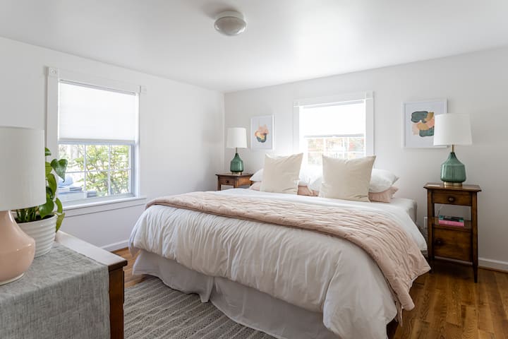 Het tuinhuis is een open en ruim huis met alle voorzieningen die je nodig hebt voor een groep om zich te verspreiden en hun eigen ruimte te hebben. Bijgewerkte meubels, zacht beddengoed en veel voorzieningen om te ontspannen en te genieten, maken dit een geweldige ruimte voor vakantie.