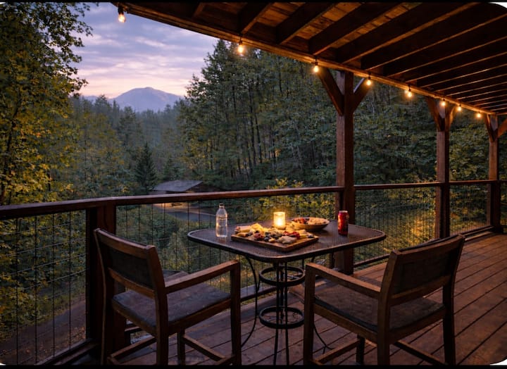 De Smoky Mountain-regio is een van de natuurlijk mooiste plekken van Tennessee en Kettle Creek Cabin stelt je in staat om er middenin te zitten. De eigen en schaduwrijke patio's zijn voorzien van comfortabel loungemeubilair in de buitenlucht, een bubbelbad en een pittoresk uitzicht op de bergen. Geniet als gezin van een lunch op de tafel en stoelen op het balkon op de tweede verdieping. Of start de (houtskool) grill en serveer een BBQ-diner met seizoensgebonden uitzicht op de Smokies.