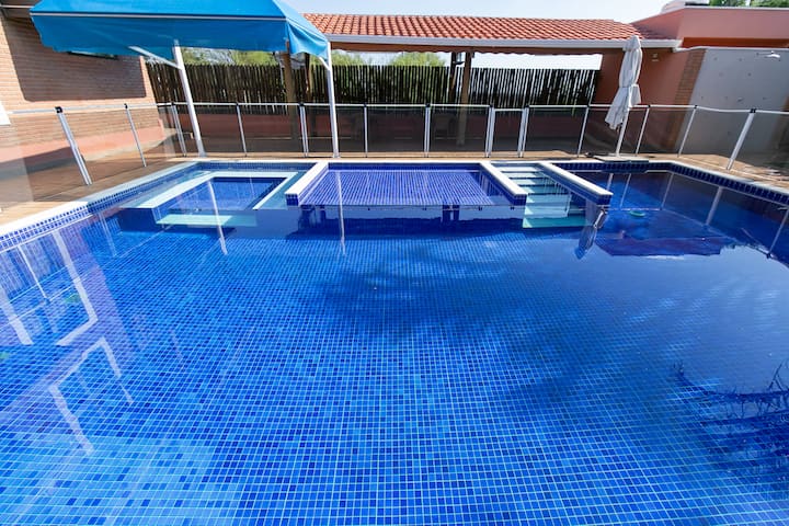 Geniet van het zwembad en het bubbelbad