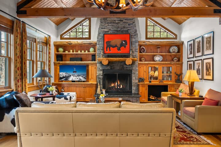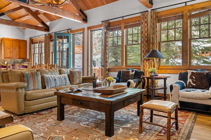 Een van de weinige woningen in Teton Village met airconditioning. Deze accommodatie met vier slaapkamers en 4,5 badkamers is ontworpen voor zowel bijeenkomsten als ontspanning. Uitgestrekte woonruimtes, op maat gemaakte meubels en een eigen bosrijke omgeving zorgen voor een gastvrije bergvakantie voor gezinnen en groepen in elk seizoen.