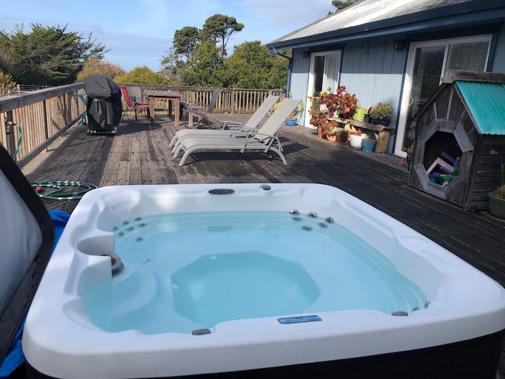 Rustig, gelukkig huis met bubbelbad en uitzicht op de oceaan.