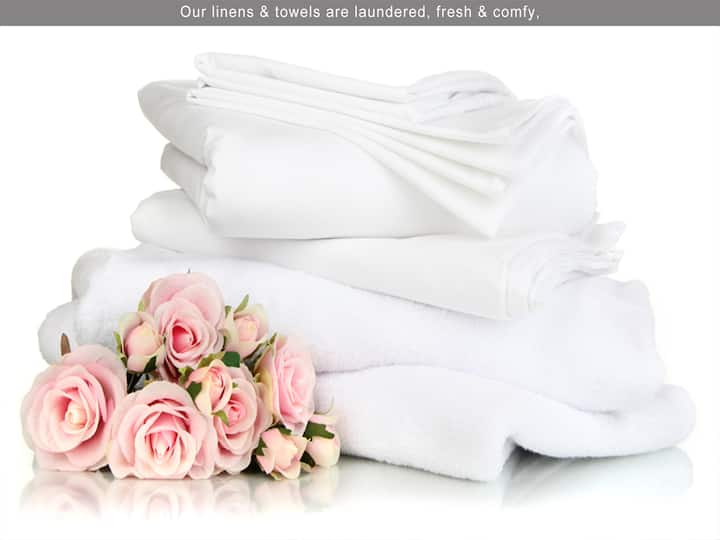 • Vers, schoon, gewassen en gestreken beddengoed, handdoeken, theedoek en toiletartikelen,