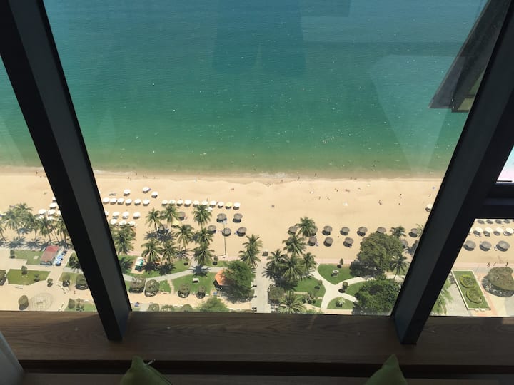 Een appartement aan het strand bij de baai van Nha Trang
