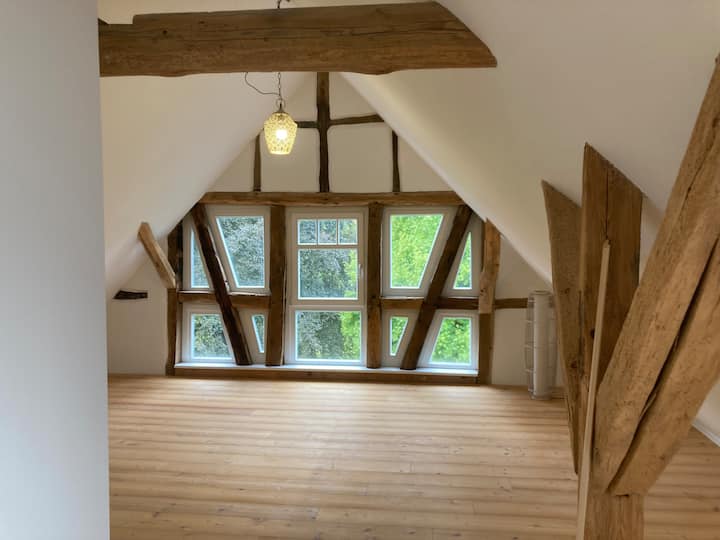 Historisch vakwerkhuis aan het Rotkäppchen-fietspad