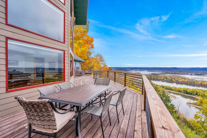 Eagles Landing ligt hoog op de Driftless Bluff met een ongeëvenaard uitzicht op de Mighty Mississippi River. Deze prachtige Riverview-woning heeft alle voorzieningen die je nodig hebt of wilt, waaronder een eigen buitenbubbelbad. Alle slaapkamers hebben uitzicht op de rivier, waaronder de 24x15 Master Suite. Er is een 18x25 theaterkamer, evenals een sjoelbak, bar en vuurplaats voor je plezier. Deze woning belooft je niet te teleurstellen voor je volgende uitstapje!!! Reserveer nu
