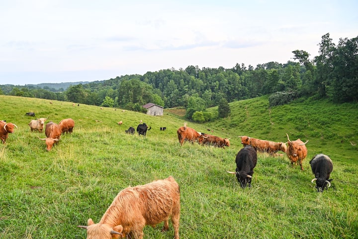 Houten huisje op werkende veeboerderij in Kentucky