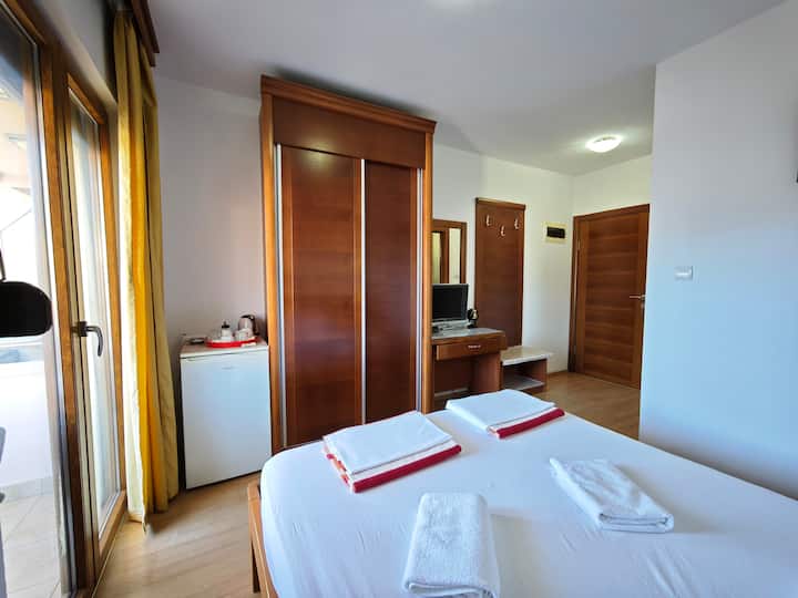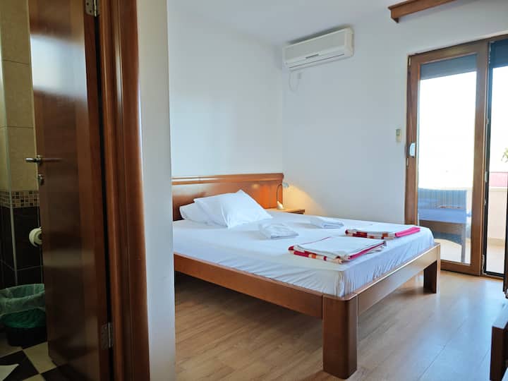 Tweepersoonskamer nabij het centrum met uitzicht op de stad en de zee