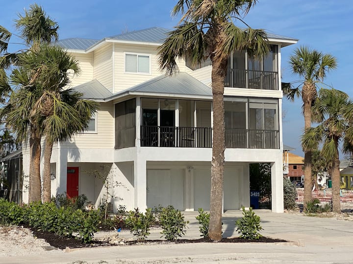 Welkom bij ons huis met uitzicht op het strand aan de overkant van het strand met verwarmd zwembad. We hebben onze renovaties voltooid sinds de orkaan met nieuw luxe vinyl in het hele huis. We hebben een prachtig panoramisch uitzicht op de Golf van Mexico. Ons huis is perfect voor gezinnen. De toegang tot het strand is tegenover de straat tegenover ons huis. Er is 3500 vierkante meter woonoppervlak en is geschikt voor groepen van 8 - 12 personen.