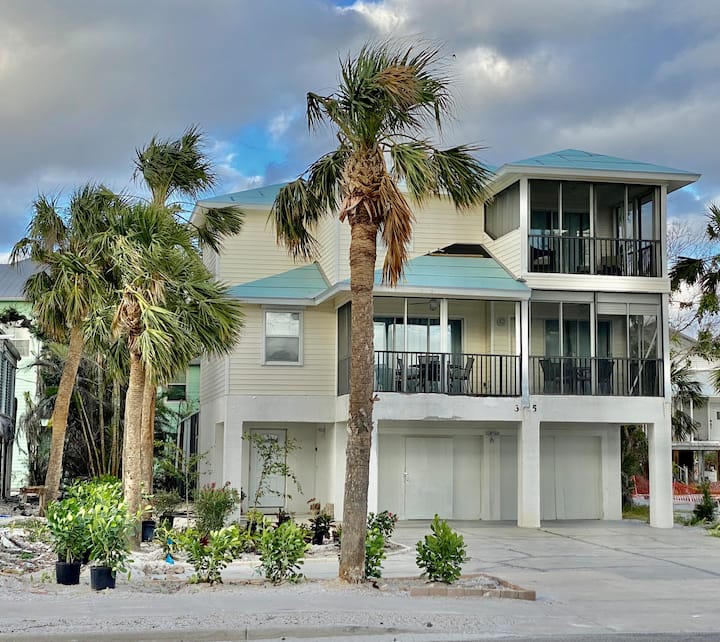 Ondanks orkaan Ian is ons huis klaar om te huren. We hebben sinds de orkaan gerenoveerd met al het nieuwe luxe vinyl in het hele huis. We hebben nu een prachtig volledig panoramisch uitzicht op de Golf van Mexico vanaf alle verdiepingen. Het strand komt weer tot leven. Onze strandgemeenschap is weer tot leven gekomen. Fort Myers Beach heeft nog steeds littekens van de orkaan, maar het strand komt weer tot leven. Het strand ziet er geweldig uit, restaurants en bars gaan weer open en de parasailing is terug. Foodtruckbanen zijn nu een nieuwe toevoeging aan het strand. Live outdoor muziek is terug. De Yucatán, Dixie Seafood Co., Wahoo Willys, Bonita Bills, Fresh Catch Bistro en Junkanoo zijn nu enkele van de restaurants die nu geopend zijn (26 bars en restaurants zijn nu geopend). Margaritaville is nu open en open voor publiek met 6 nieuwe restaurants, bars en dagspa en andere strandactiviteiten. De strandtrolley loopt. De Publix supermarkt en CV 'S zijn geopend.