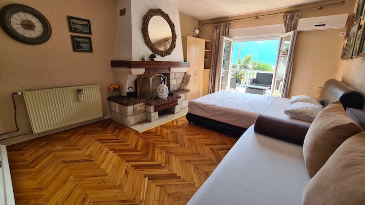 Studio met balkon en uitzicht op zee