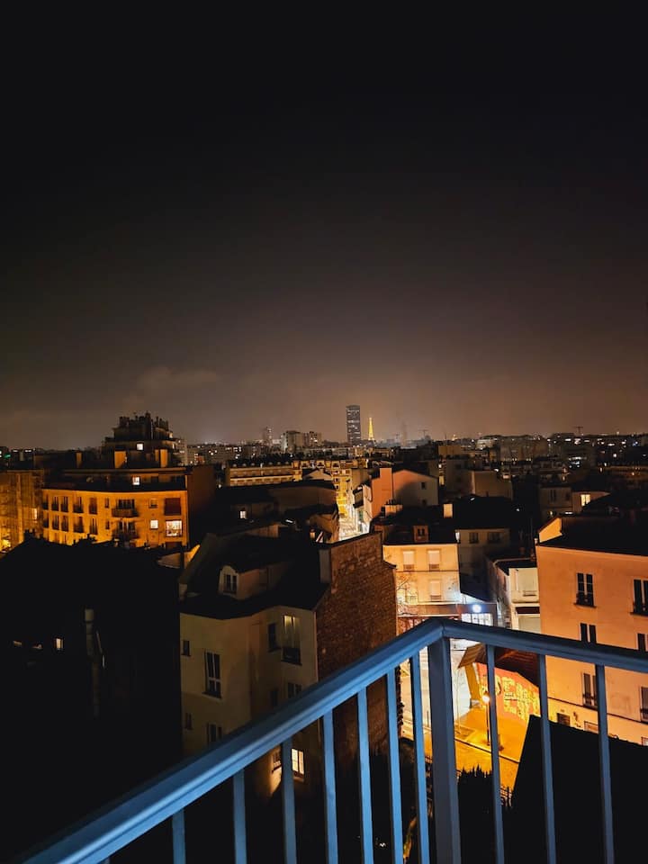 Butte aux Cailles, balkon + uitzicht op de Eiffeltoren