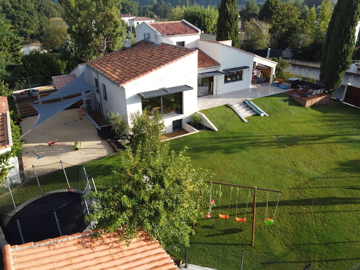 Ideaal voor gezinnen, de Villa is een oase van rust gelegen op een steenworp van het pittoreske dorpje Cabriès. Geniet van de tuin zonder vis-à-vis, beveiligd zwembad, kinderspeeltuin, tafelvoetbal, trampoline, petanquebaan, slackline... alles is doordacht om je een onvergetelijke vakantie te bieden.