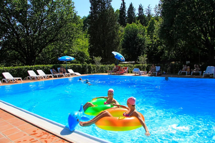 Dit is een van de weinige accommodaties in de omgeving met een zwembad.