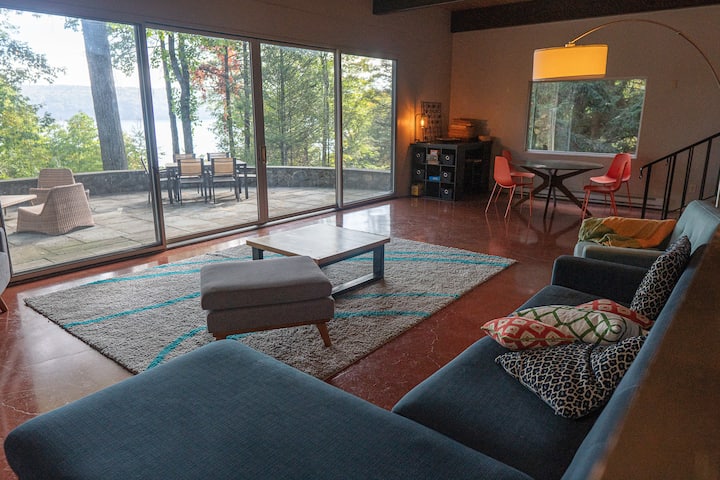 Ruime moderne woning aan een meer uit het midden van de vorige eeuw
