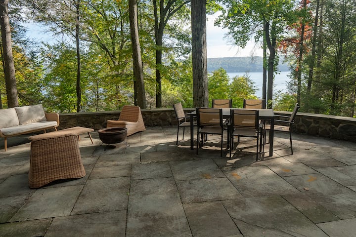 Deze woning ligt direct aan Cayuga Lake.