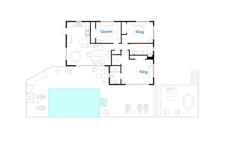 Silver Palms Retreat biedt de perfecte uitvalsbasis voor gezinnen, koppels of vrienden die op zoek zijn naar een privé, goed ingerichte retraite met moeiteloze toegang tot het strand en alle natuurlijke schoonheid die Exuma te bieden heeft. Het verwarmde zwembad en de loungeruimte liggen op een royale patio van 1000 vierkante meter met uitzicht op de oceaan en nodigen gasten uit om te ontspannen onder de Bahamaanse zon of buiten te dineren terwijl ze genieten van de zeebries. Of je nu bij zonsopgang koffie drinkt of bij zonsondergang van cocktails geniet, de buitenruimte is ontworpen voor ontspanning en verbinding.