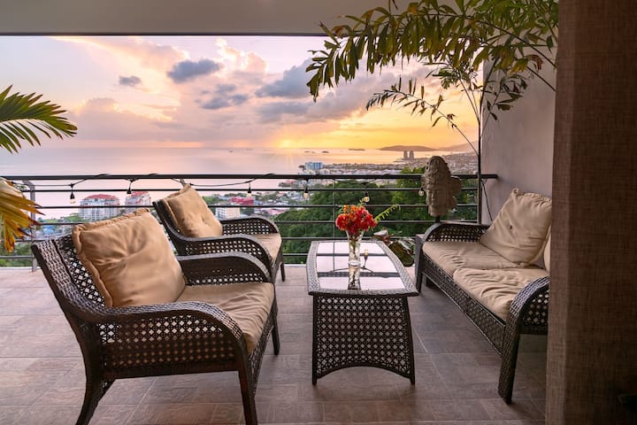 Deuren in de★ woonkamer openen op een groot balkon voor een volledig schilderachtig uitzicht