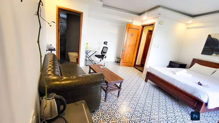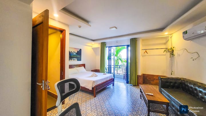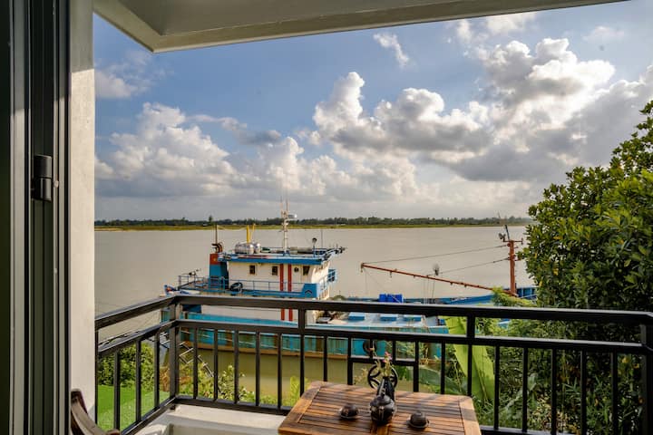 Ruime kamer met balkon en een prachtig uitzicht op de rivier