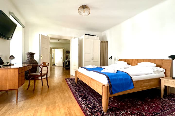 We zijn dolgraag jullie hosts! Zoon Marius, mijn team Apartment Schremmer en ik verwelkomen je graag in onze vakantieappartementen en tijdelijke huurappartementen in 1070 Wenen! We willen een woning aanbieden waar de nadruk ligt op slaapcomfort, schoonmaak en hygiëne en een aantrekkelijk interieur. Elk appartement heeft een verhaal te vertellen, de gebouwen zijn al vele decennia in familiebezit.