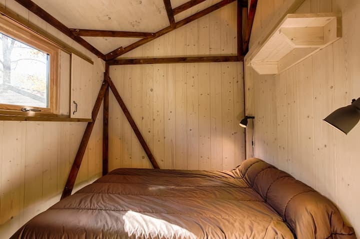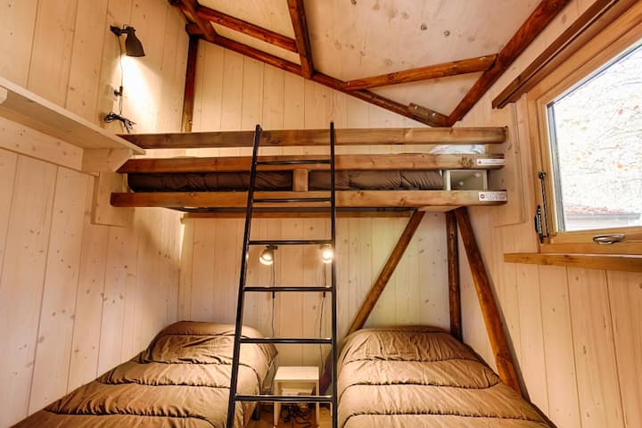Houten huisje op stelten 3 kamers 5 personen + tv
