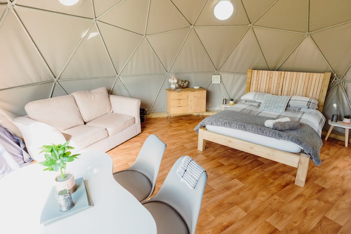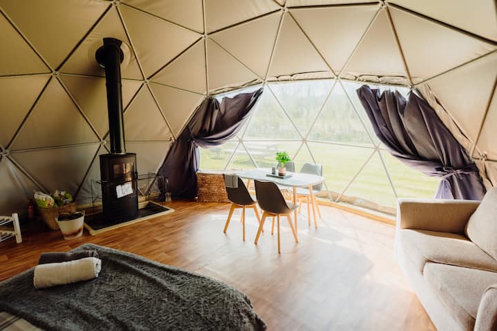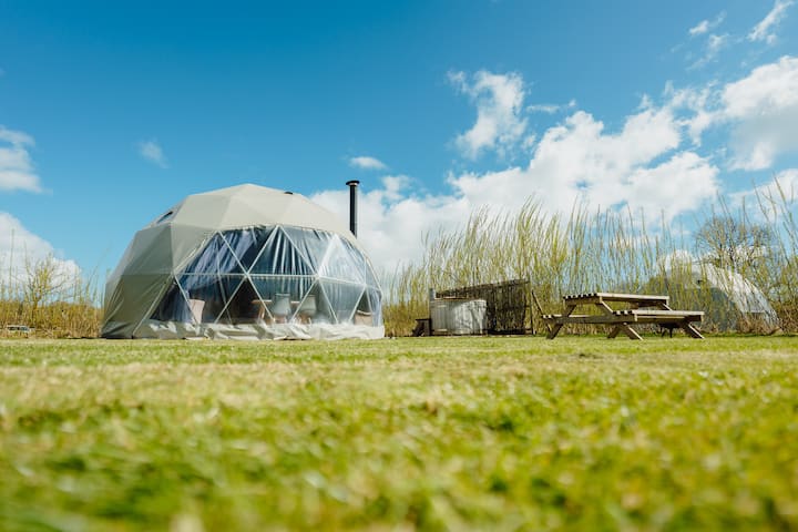 Geodome met eigen houtgestookte HOTTUB