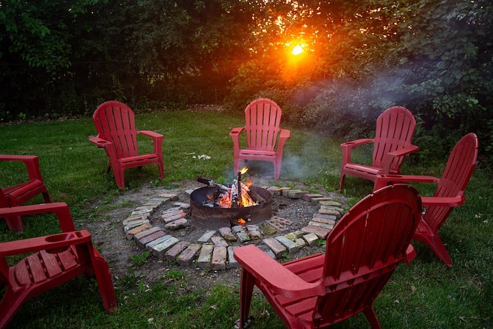 Stel je voor, geniet van de drukte en het plezier van Michigan 's Little Beieren en keer dan terug naar je rustige, privé, afgelegen boerderij om te ontspannen. Dat is het scenario dat op je wacht in Holiday Haven, waar je de kerstvreugde van Frankenmuth niet achter je hoeft te laten, omdat je er details van zult vinden in het hele huis – en zelfs een hele kerstslaapkamer. Je zult genieten van een volledig uitgeruste keuken, games, tv 's in de meeste slaapkamers, vuurplaats, snelle wifi en nog veel meer – allemaal op slechts 1,5 mijl van het centrum van Frankenmuth.