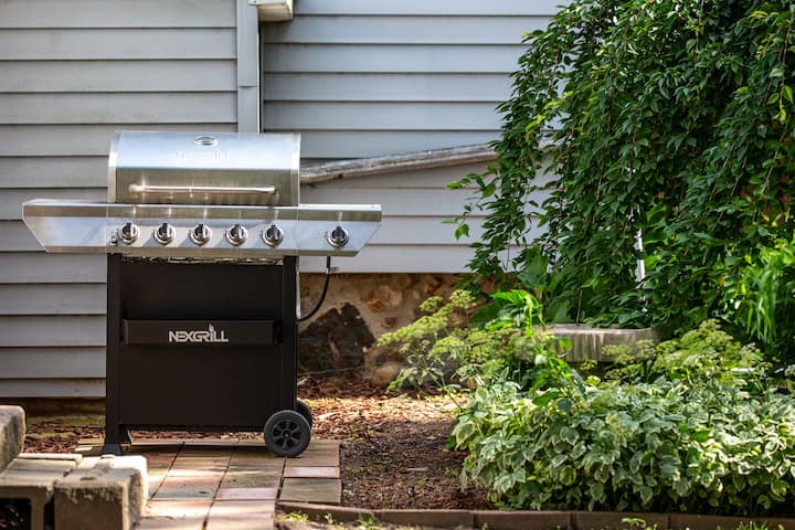 Buiten vind je een grote omheinde tuin, waar kinderen en hondjes kunnen ravotten en de groep cornhole kan spelen of herinneringen kan maken rond de vuurplaats. Ontspan op buitenterras en kook op de gasgrill.