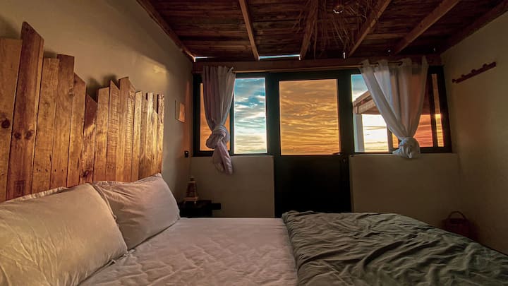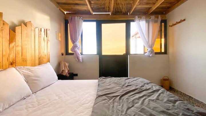 Ik heb een huis met 3 verdiepingen. De eerste verdieping bestaat uit 2 kamers ,uitgerust met gedeelde keuken en badkamer . De tweede verdieping heeft twee kamers en een slaapzaal met zes bedden en een gedeelde badkamer. De laatste verdieping is een dak waar zich twee kamers bevinden met een adembenemend uitzicht op de oceaan en zonsondergangen.