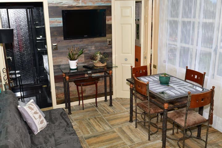 Dit is een van de weinige accommodaties in de omgeving met gratis parkeergelegenheid.