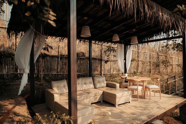 KUBONG PAWID (buitenlounge) - Een gezellige verhoogde loungeruimte om te ontspannen en te genieten van de schoonheid van Bakuran. Doe een dutje op onze 5-zitsbank!