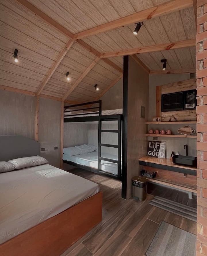 BALAI BUNSO is een van de drie hutten die met liefde is gemaakt en is ontworpen om een andere ervaring te hebben. Het is een moderne tiny house-stijl hut van 25 m ². De mooie bakstenen muren zullen je laten fantaseren over kampvuren en smores!