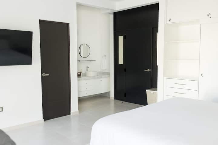 De Playa Villa is centraal gelegen in de wijk Encuentro in de buurt van de snelweg. De perfecte locatie om alles te verkennen wat de Riviera Maya te bieden heeft (stranden, cenotes, snorkelen, themaparken, Maya-ruïnes, eilanden, geweldige restaurants) met de auto.